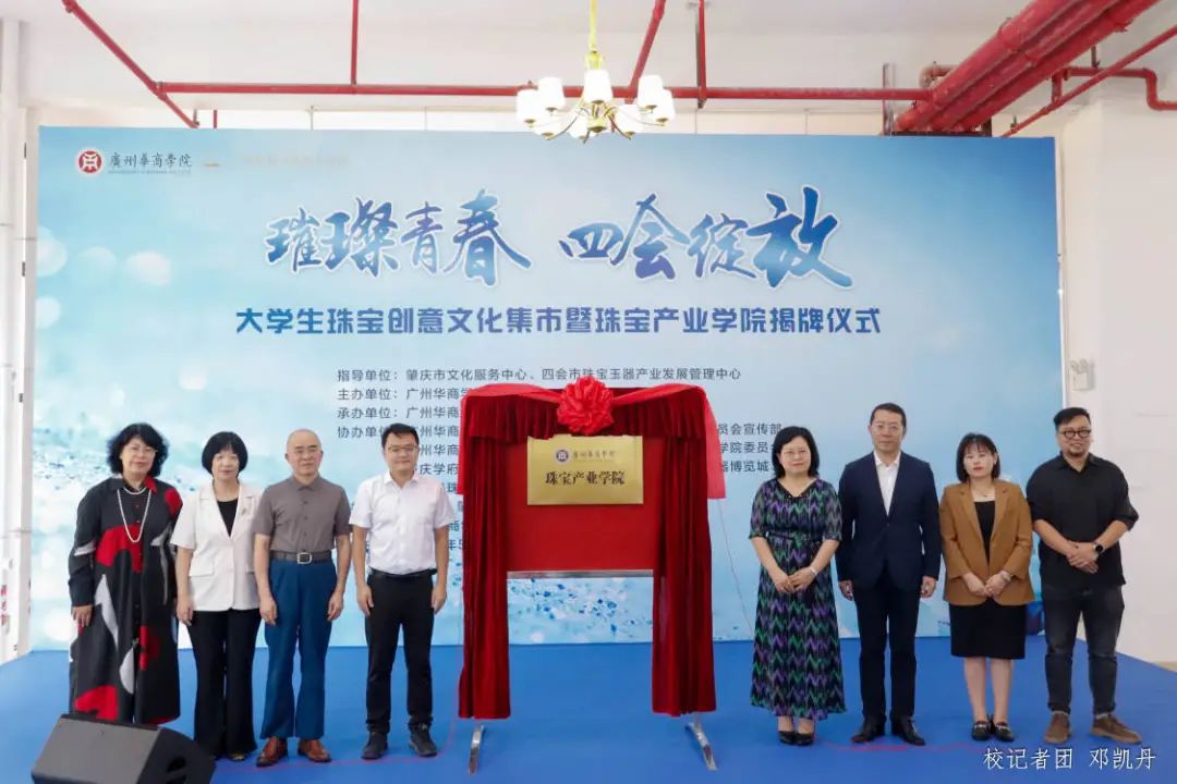 在与会嘉宾与全体师生的见证下,四会市人民政府副市长梁俊杰及学校领导共同揭牌。标志着广州多多28珠宝产业学院正式成立。