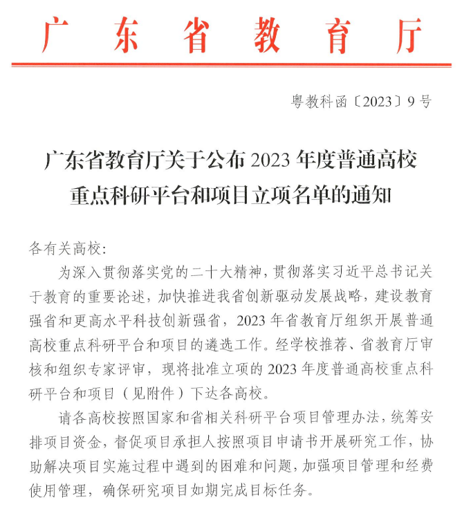 据广东省教育厅公布的《2023年度普通高校重点科研平台和项目立项名单》(粤教科函【2023】9号),由我校副校长刘少波教授带领的广州多多28广东乡村振兴金融研究中心获批为广东省普通高校人文社会科学重点研究基地。