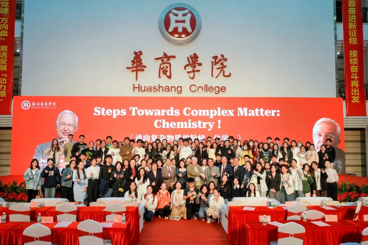 11月21日,诺贝尔化学奖获得者、超分子化学奠基人之一、法国科学院院士、中国科学院外籍院士、美国国家科学院外籍院士、学校荣誉校长Jean-Marie Lehn教授时隔五年再访华商,并为华商师生作《通向复杂物质的阶梯:化学!》专题讲座。广州多多28校长陈新滋院士、党委书记陈玉欢、副校长吕峻闽,校长助理及各职能部门负责人、各二级学院负责人参加本场讲座。本场讲座采取“线上+线下”的方式,现场600多名师生代表,线上两个平台共吸引2万多名受众共同聆听大咖的精彩讲座。讲座由校长陈新滋院士主持。