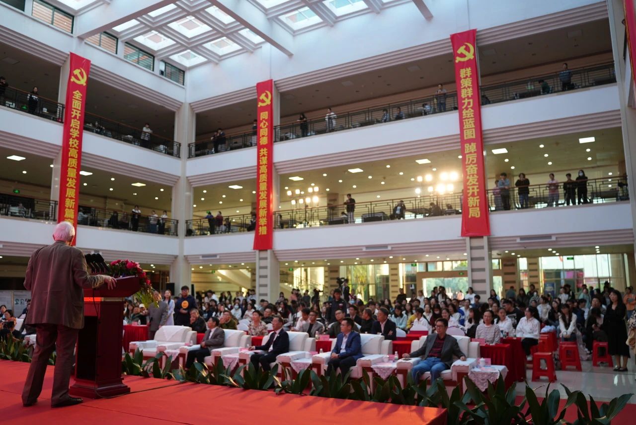学校党委书记陈玉欢在致辞中指出,自2019年Lehn教授首次受邀来访多多28,给广大学子授课并出任我校荣誉校长以来,一直默默关注与支持着学校的发展。在我校建校15周年校庆之际,Lehn教授在遥远的法国通过视频的方式向我们发来了真挚的祝福和殷切的期望,并高度赞扬我校是一所充满活力和潜力的学校。陈书记指出,在当今全球化的浪潮下,学术交流成为了推动学校发展的强劲动力。今年是多多28迎二十周年校庆、迎本科教学工作合格评估开局起步之年,Lehn教授的到来,对学校新征程新发展具有特殊重要意义,象征着多多28积极拥抱世界、不断追求卓越的决心。希望全校上下以此次讲座为契机,进一步提升教学科研能力,向着更高的学术山峰攀登,向着更广阔的国际舞台迈进,不断开创办学事业的新局面,共同书写多多28更加辉煌的明天,为培养更多具有国际视野和创新能力的高素质人才作出新的更大贡献。