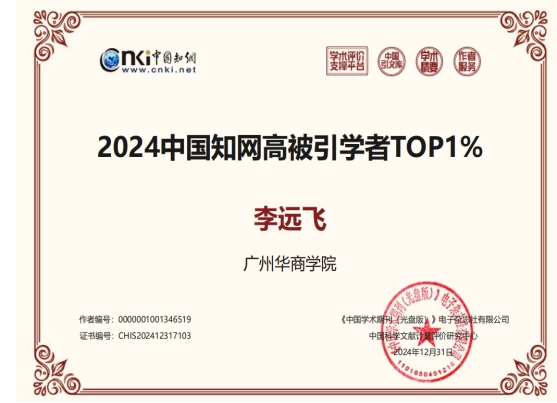 近日,中国知网中国科学文献计量评价研究中心公布了“2024中国知网高被引学者”预发布名单。我校韩兆洲、雷钦礼、李远飞、林海明、刘耀中、张海容等6名教师入选“2024中国知网高被引学者”。