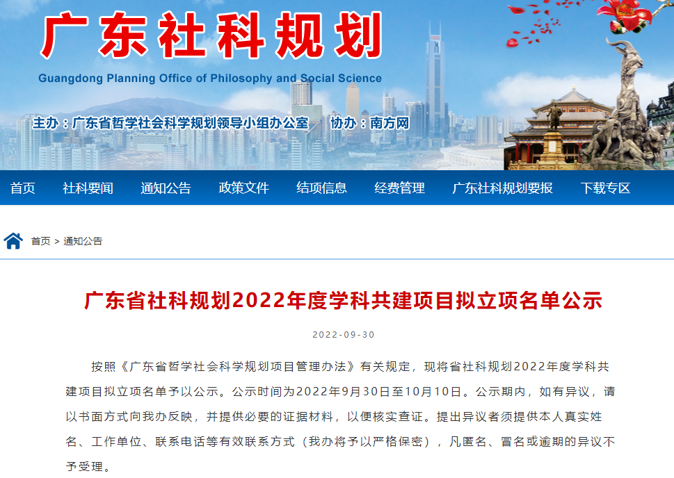 据悉,学科共建项目是广东省哲学社会科学规划项目的项目类型之一,旨在支持哲学社会科学学科体系建设和人才队伍建设,提升哲学社会科学研究水平和综合实力。我校两个项目获批立项,一定程度上彰显了我校在哲学社会科学学科体系和高层次人才队伍的建设成效。