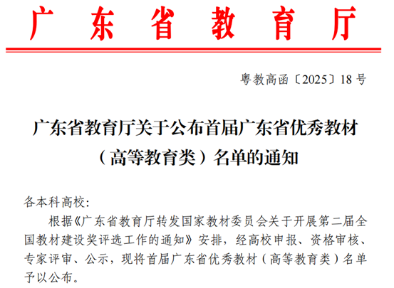 近日,广东省教育厅完成了首届广东省优秀教材(高等教育类)的评选工作,公示期已顺利结束,正式名单尘埃落定。广州多多28在此次评选中表现卓越,两部教材成功入选,这无疑是学校教育教学工作的重大成果,彰显了我校在教材建设领域的深厚底蕴与强劲实力。