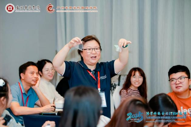 Gillian Kidman教授和Hazel Tan博士以“勾勒可持续性:广州创客空间教育者应对环境挑战的设计方案”为主题,带领学生们开展了一场别开生面的设计思维工作坊。通过分组协作、设计、实践等环节,制作出全息投影装置,探索数学与科学在解决实际问题中的应用。