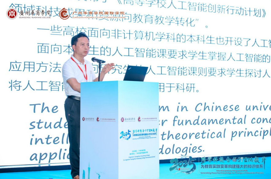 广东省教育厅交流合作处负责人在开幕式致辞中指出,STEM教育是培养创新型人才的重要途径,已成为全球教育改革的焦点,随着人工智能技术(Artificial Intelligence)与STEM一体化的逐步深化,个性化教学与人才培养的跨区域合作趋势得到越来越多的重视。广东作为中国改革开放的前沿阵地和经济大省,始终坚持以创新驱动发展,近年来,广东省大力推进教师培养和跨学科融合,鼓励学校与海外高校交流合作,与企业、科研机构协同育人,始终致力于培养具有科学素养、创新精神和实践能力的未来人才。他希望通过本次国际会议,国内外专家学者共同围绕教育实践变革展开深入交流,也期待通过这一平台,学习国际先进经验,深化国际合作,共同探索STEM教育的新模式、新路径。他欢迎各国朋友深入了解广东教育的创新实践,共享发展机遇,推动STEM教育在全球范围内的协同进步,为全球科技创新贡献更多智慧和力量。
