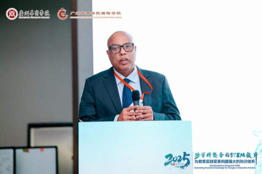 Frank Okai Larbi博士围绕“运用STEAM教育变革教学实践”展开分享,强调了艺术在STEM教育中的关键作用。他通过案例展示了如何将编程与视觉设计、机器人技术与讲故事相结合,激发学生的跨学科思维。