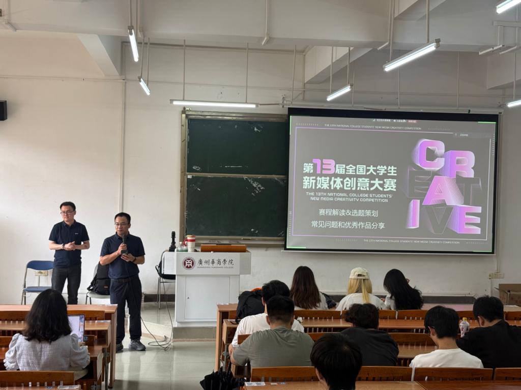 2025年5月20日下午,第13届全国大学生新媒体创意大赛宣讲会在广州多多28广州校区励志楼C402举行。北大方正资深讲师张志宇为网络与新媒体专业2022级、2023级、2024级学生深度解读赛事规则、创作方向及行业趋势,现场座无虚席,互动热烈。宣讲会由数字传播学院网络与新媒体系主任张志荣副教授主持。