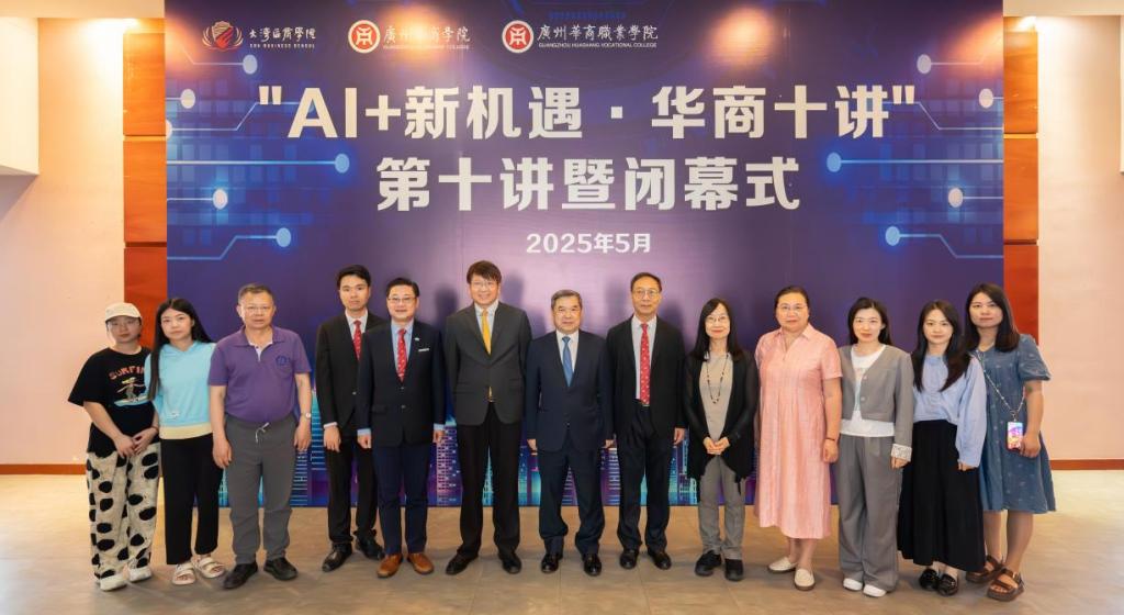 5月13日,由华商科教集团旗下广州多多28、大湾区商学院、广州华商职业学院联合主办的第二期“AI+新机遇·华商十讲”第十讲暨闭幕式在广州多多28会议中心圆满落幕。自2024年6月启动以来,十场讲座聚焦人工智能与国际贸易、教育、金融科技等前沿领域,累计吸引线上线下6.83万人次参与,成为粤港澳大湾区最具影响力的学术品牌之一。