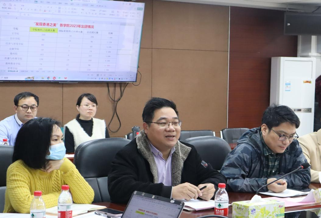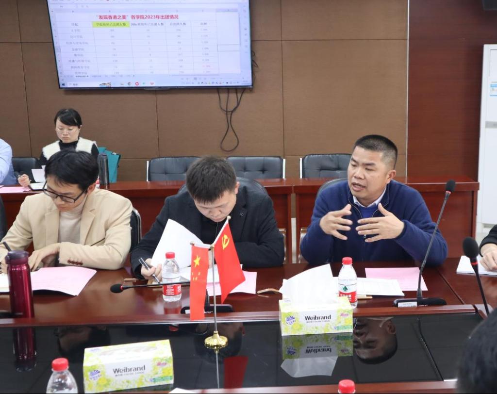 2024年3月5日,我校在多多28广州校区行政楼513会议室顺利召开了“发现香港之美”研学专题研讨会。党委书记陈玉欢、副校长吕峻闽、校长助理、相关职能部门负责人、各二级学院学工书记参加了本次研学专题研讨会。会议由国际交流与合作处暨港澳台办主任王文忠主持。