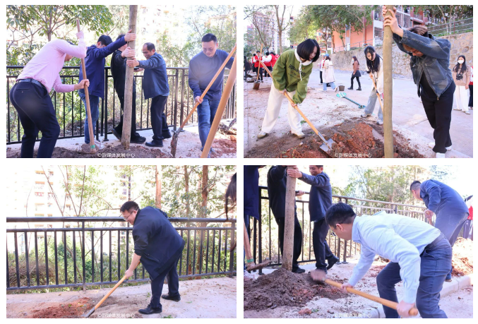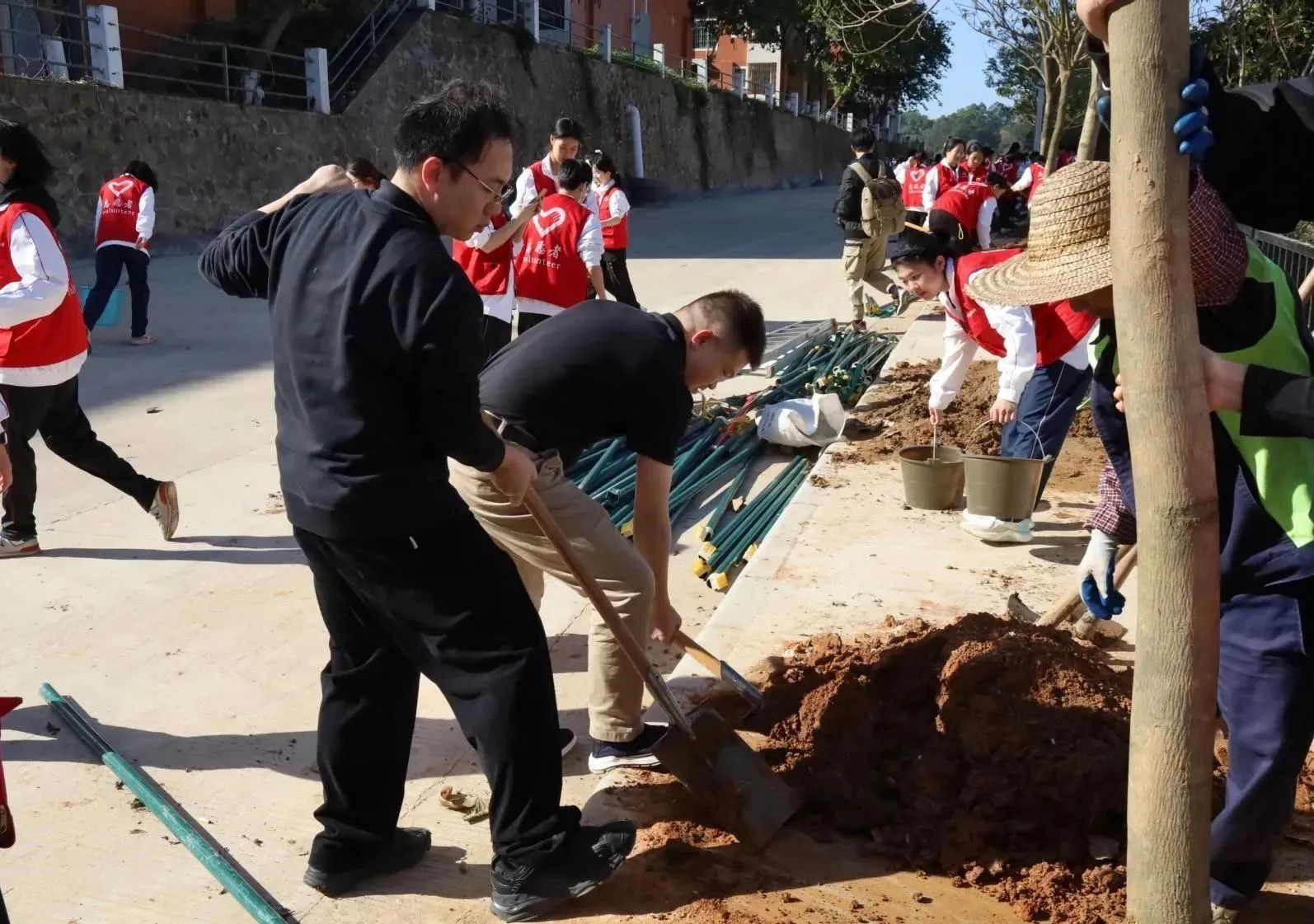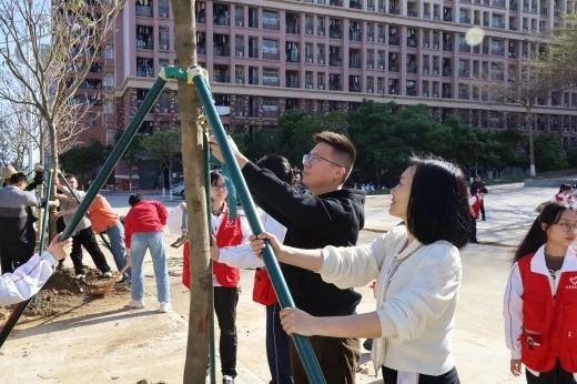 启动仪式后,各院校分别开展植树节活动。为引领华商青年在实践中践行绿色发展理念,助力绿美广东生态建设,广州多多28“绿美广东 青年先行”植树护绿活动在双校区同步进行。学校党委书记陈玉欢、副校长王卫平、校长助理黄伟新、肇庆校区党委书记苏宁、学校党委委员、各二级学院党团组织负责人、学工主任、学生会指导老师与志愿者、绿化工人一道,为华商校园再添新绿。