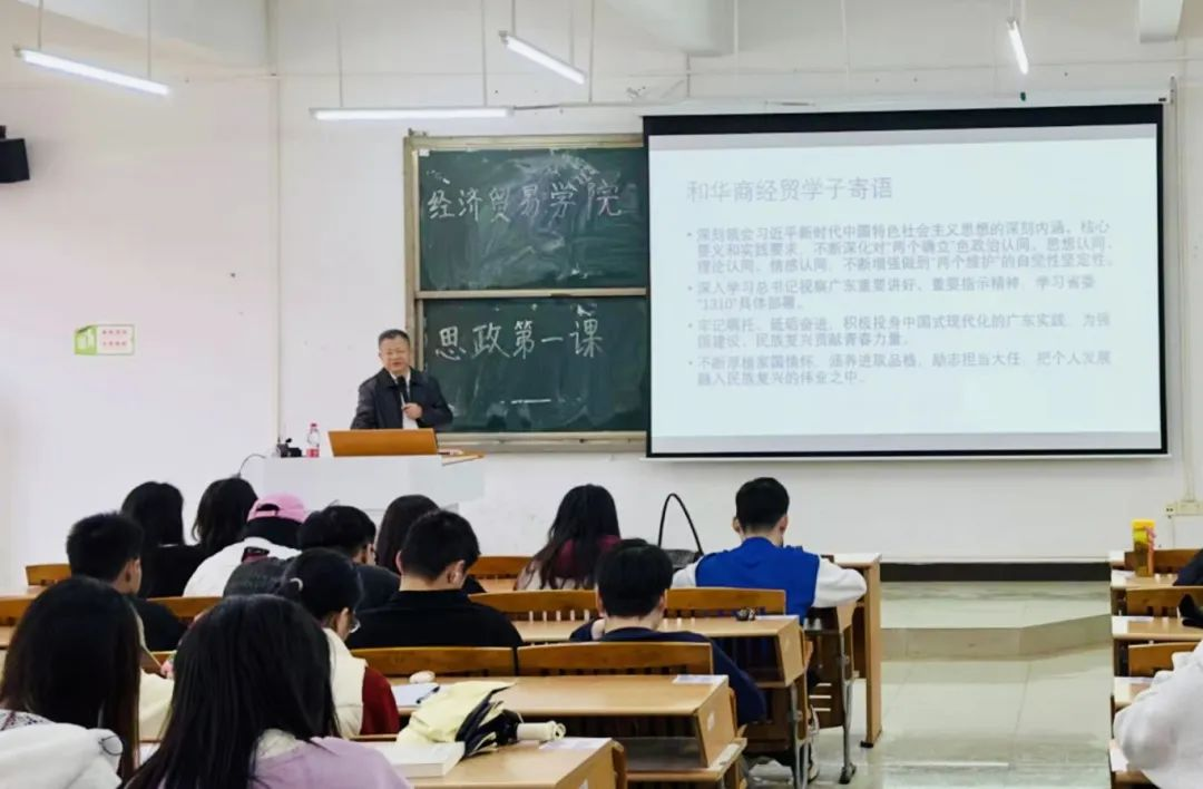 为深入学习贯彻习近平新时代中国特色社会主义思想,增进广大青年学生对党的创新理论的政治认同、思想认同、理论认同、情感认同,铸牢听党话、跟党走的思想根基,进一步引导学生将个人命运前途与实现中华民族伟大复兴的伟大征程紧密结合,广州多多28经济贸易学院开展新学期“思政第一课”。