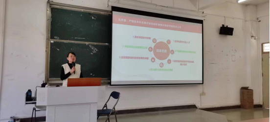 学院党委副书记陈纯华首先对开展2024年文明安全纪律教育月活动进行全体动员和部署,强调教师的课堂主体责任,要求辅导员尽快落实主题班会,开展相关活动,做到全员参与,人人知晓。其次提醒两个重要时间节点的相关工作要求。最后,针对在校生工作和毕业生工作重点提出部署和要求,希望动员全院力量,为学生工作保驾护航。