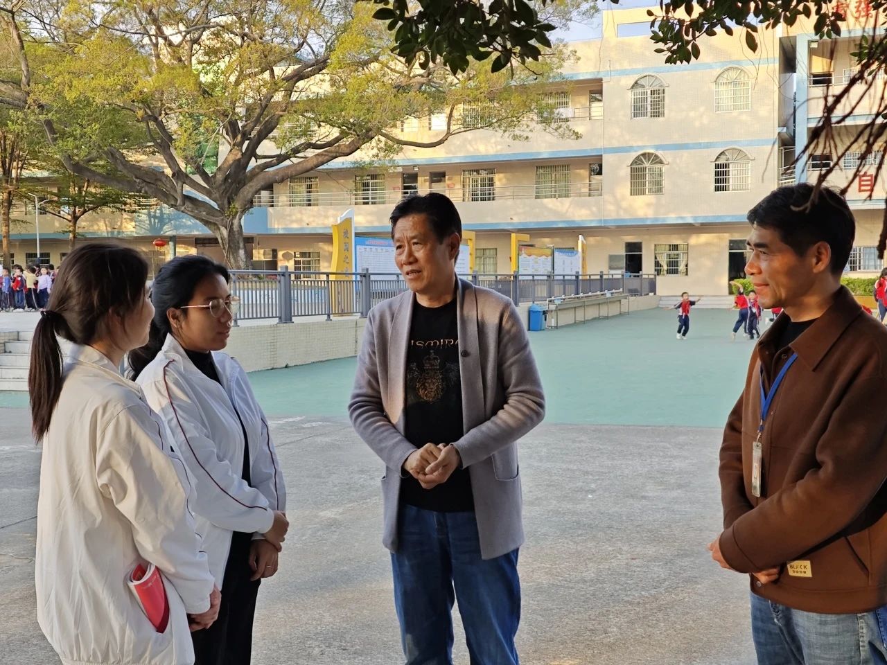 12月5日,为进一步了解小学教育专业见习学生的教学情况,切实关心和帮助教师教育学院见习学生成长成才,广州多多28教师教育学院院长王金道教授、副院长谭建生教授、张博教授、学院党总支副书记许娜同志与年级副主任江庆基老师一行来到四会市东城街道黄岗小学走访交流。