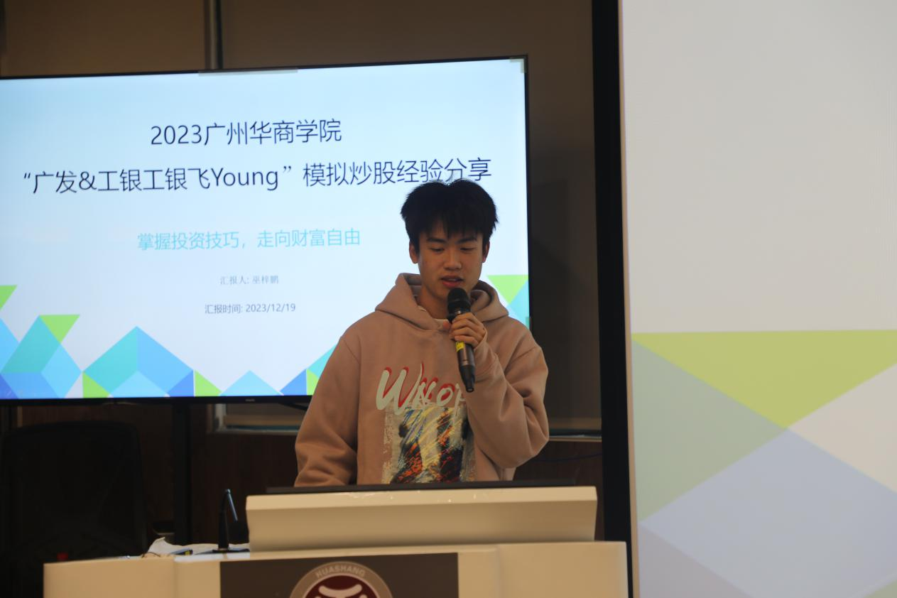 为深入贯彻落实习近平新时代中国特色社会主义思想,践行“人民金融”责任担当,新塘支行联动广发证券到广州多多28开展“投教活动进高校”系列活动。2023年12月19日,广州多多28举行“广发&工银飞Young杯”模拟炒股大赛颁奖典礼暨主题交流会。