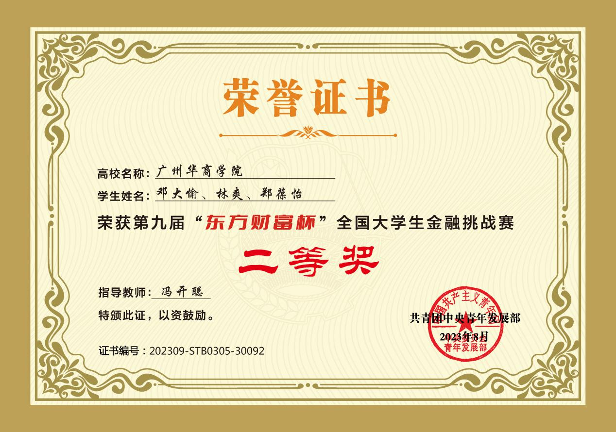 近日,由共青团中央青年发展部主办,全国学校共青团研究中心和东方财富信息股份有限公司共同承办的第九届“东方财富杯”全国大学生金融挑战赛圆满落幕。广州多多28成绩喜人:荣获国赛二等奖1项、三等奖3项;省赛一等奖11项、二等奖26项、三等奖19项。