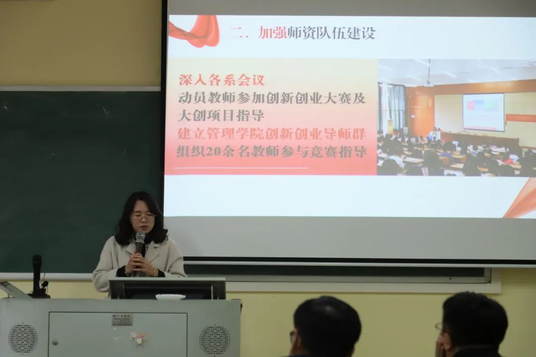 有始有终,方得圆满;自省回顾,方能进步。本次双创秘书年度考核述职大会旨在进一步加强我校创新创业教育工作队伍建设,不断建立健全双创工作考核机制。考核述职大会不仅是一次总结汇报会,更是双创秘书增进交流和相互学习的重要平台。希望各位双创秘书在未来的工作中,紧紧围绕立德树人根本任务,紧跟学校发展思路,按照学校创新创业工作要求,在做好双创秘书常规工作的同时,进一步提升自己的创新创业指导能力与教学水平,在工作中不断凝练创新创业教育理论与实践成果,推动学校创新创业工作深入开展。踔厉奋发结硕果,勇毅前行再启航!