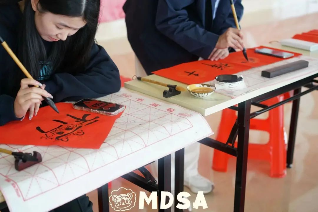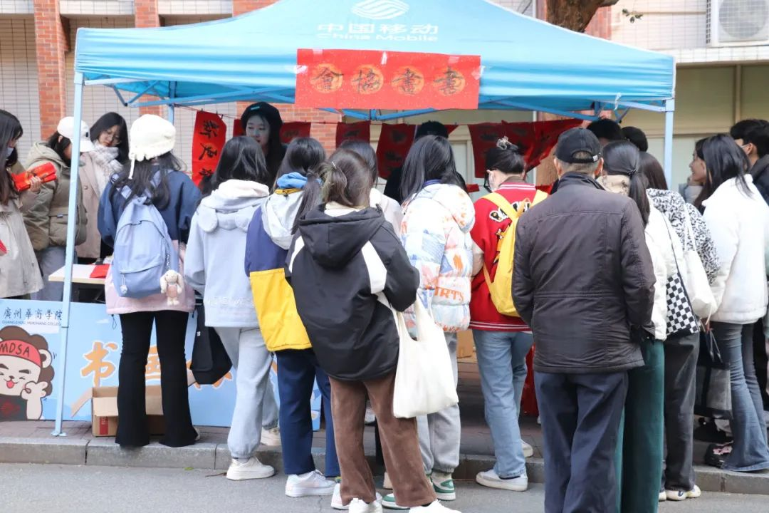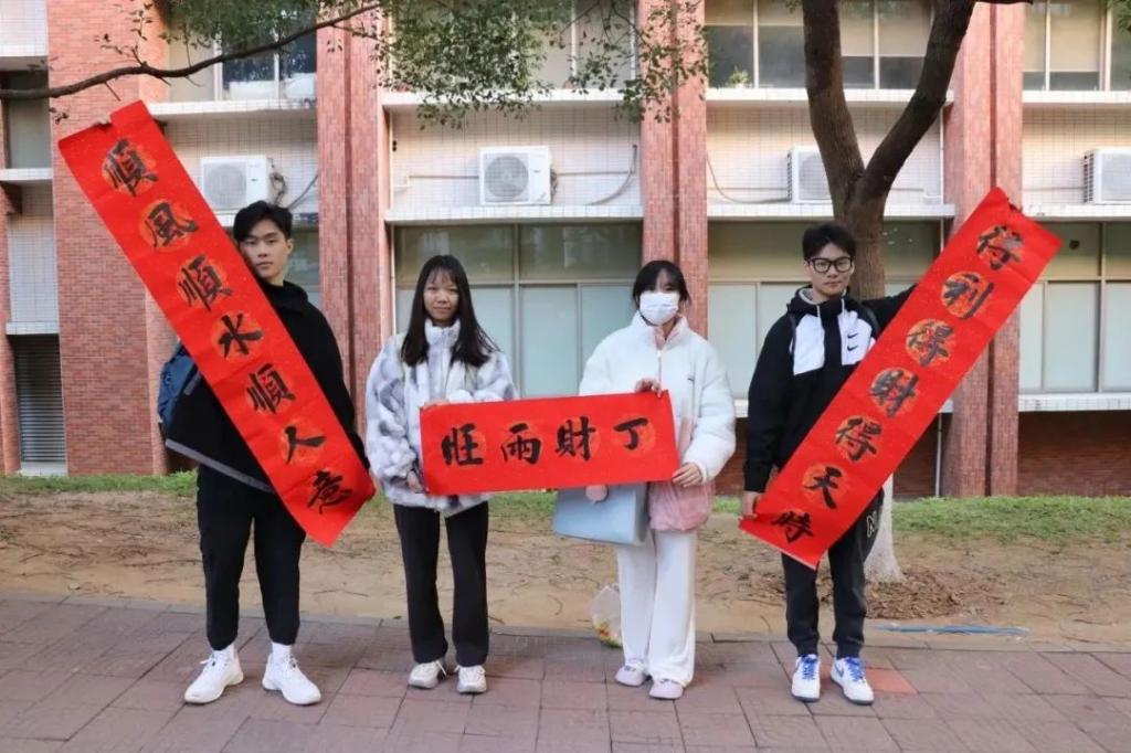 妙笔生花送祥瑞,翰墨飘香添年味。为迎接龙年春节的到来,弘扬中华优秀传统文化,向华商师生传递美好的祝福,营造喜庆祥和的节日氛围,2023年12月7日、22日,在学校党委领导下,我校团委指导书画协会在双校区开展“翰墨凝香 辰龙送福”挥春送福活动。
