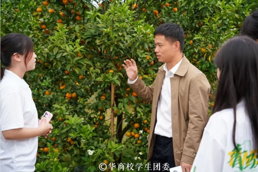 第一站,我校青马班学员一行来到沙糖桔产业园中的文化馆场,认真倾听黄田镇党委副书记、佛山市驻黄田镇帮镇扶村工作队队长梁柱对四会市沙糖桔的历史来源和黄田镇沙糖桔种植面积的讲解。学员们从讲解中深刻了解到沙糖桔作为帮扶产业,对当地乡村振兴的关键作用,和梁柱书记一同深入沙糖桔种植基地,以团支部为单位拍摄主题为“我为黄田砂糖橘打Call!”视频,为黄田沙糖桔进行宣传。