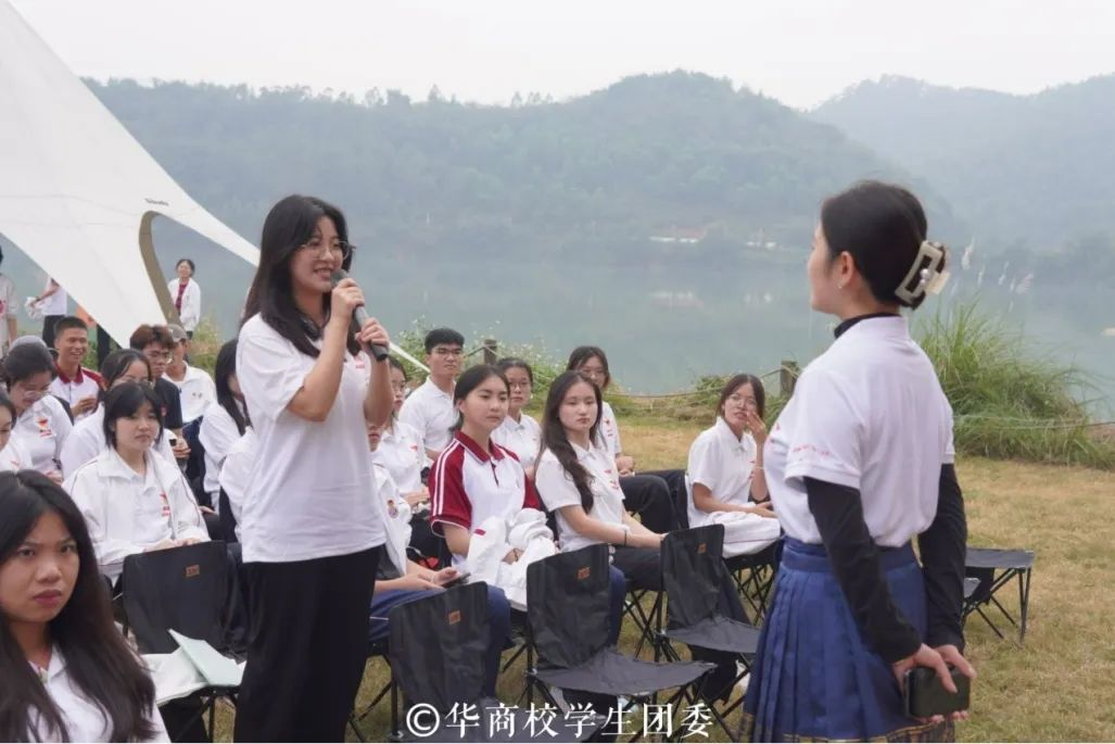 第四站,大家来到一念星空露营基地开展活动。广东省肇庆市乡村振兴志愿者、第十四届中国青年志愿者优秀个人奖获奖者何艺珊为青马班学员们分享自身参与乡村振兴志愿服务的故事,讲述如何运用新媒体技术宣传当地特色、当地产业,从红色文化聆听者转变为传播者的经历。通过提问互动鼓励学员们对未来投身于乡村振兴工作,引导学员们用“理论+实践”的方式,在乡村振兴的道路上踔力奋发,为广东“百县千镇万村高质量发展工程”发展贡献青年力量。