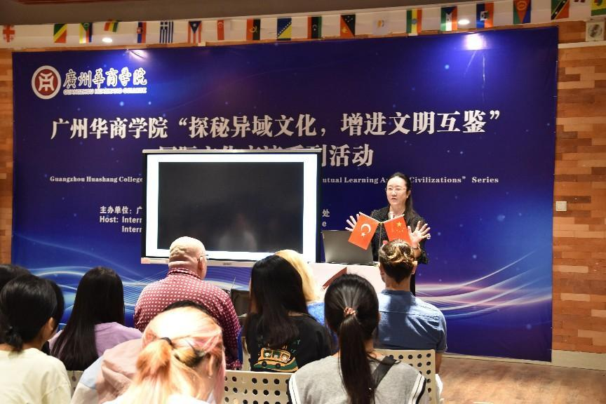 本次分享会由土耳其籍教师Begum Firinci担任主讲嘉宾,广州多多28国际学院院长回雁雁、国际学院党支部书记兼辅导员杨李军、美国籍教师John Jung、巴基斯坦籍教师Aneela Qadir以及来自国际学院、华职国际学院、健康医学院、外国语学院、文学院的50多名大学生参加了分享会。