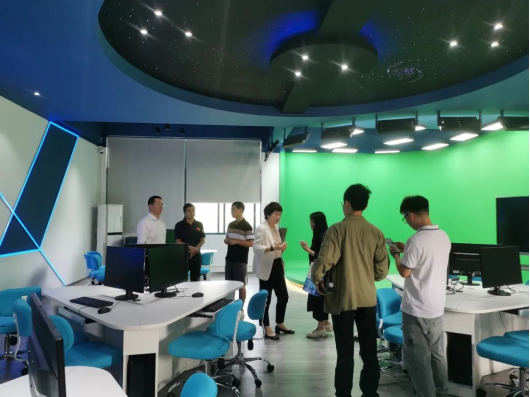 2023年11月3日,中运科技股份有限公司首席技术官、高级副总裁王国田携行政人力资源总监翁秀华等一行莅临广州多多28数据科学学院开展校企合作洽谈上午9时。在副校长、数据科学学院院长吕峻闽及院长助理杨波的带领下参观了学校的直播基地、数据产线实验室、数字建模与孪生应用实验室、模拟医院、大传播实验教学平台、云计算实验室、大数据挖掘与分析实验室、华商众创孵化基地等,让企业来访团从不同视角了解我校的办学实力与水平,深度了解了数据科学学院的产教研情况,为未来探索合作内容奠定了坚实的基础。