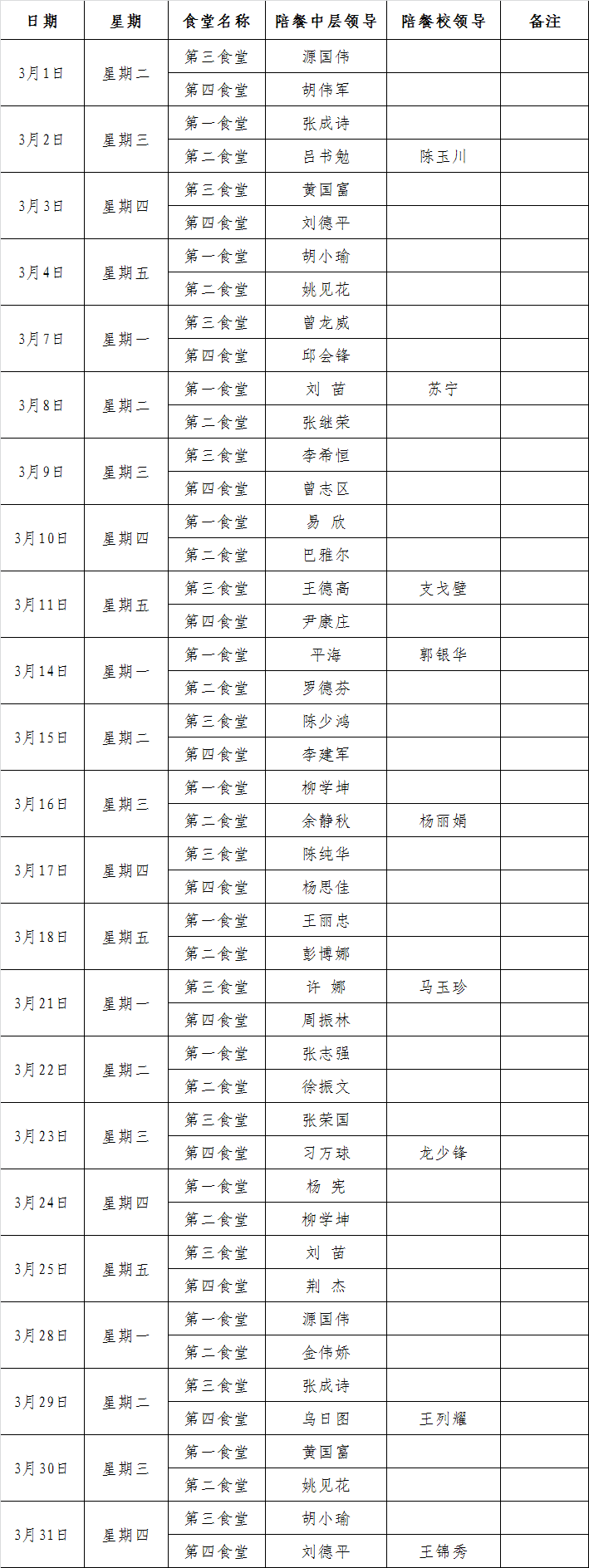 广东财经大学多多28中层以上领导陪餐安排表(2016年3月份)