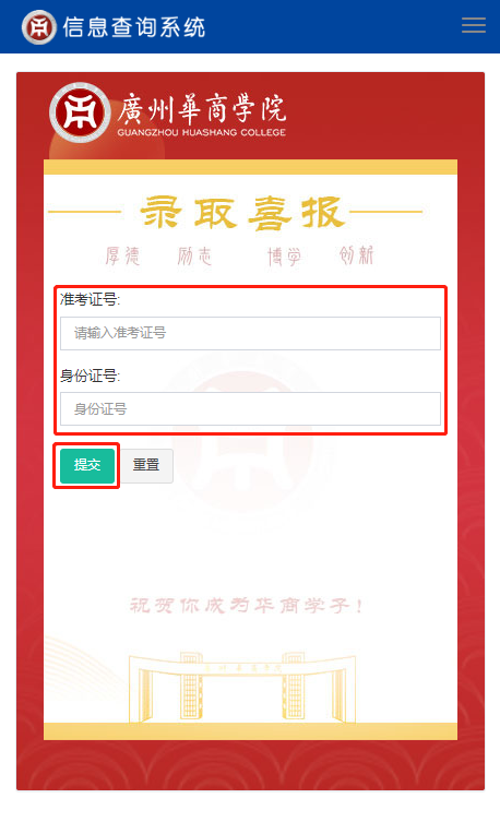 2.进入录取查询系统后选择“专升本录取”,输入“准考证号”和“身份证号”点击“提交”即可查询录取结果