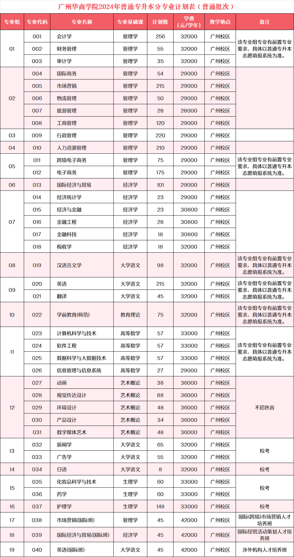 以上招生专业、计划数、专业代码、收费标准及录取批次等以广东省招生办公室公布为准。