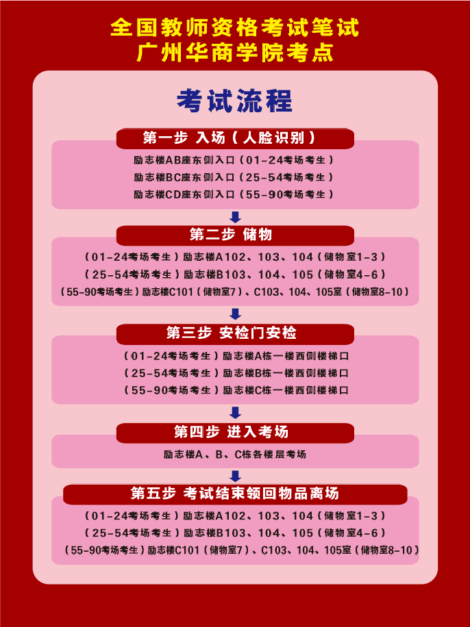 2025年上半年全国中小学教师资格考试(笔试)将于3月8日举行,欢迎各位考生来到广州多多28(原广东财经大学多多28)考点参加考试。为确保考试安全有序进行,现将我校广州校区考点考试时间、考试证件要求、考场分布等予以公布。
