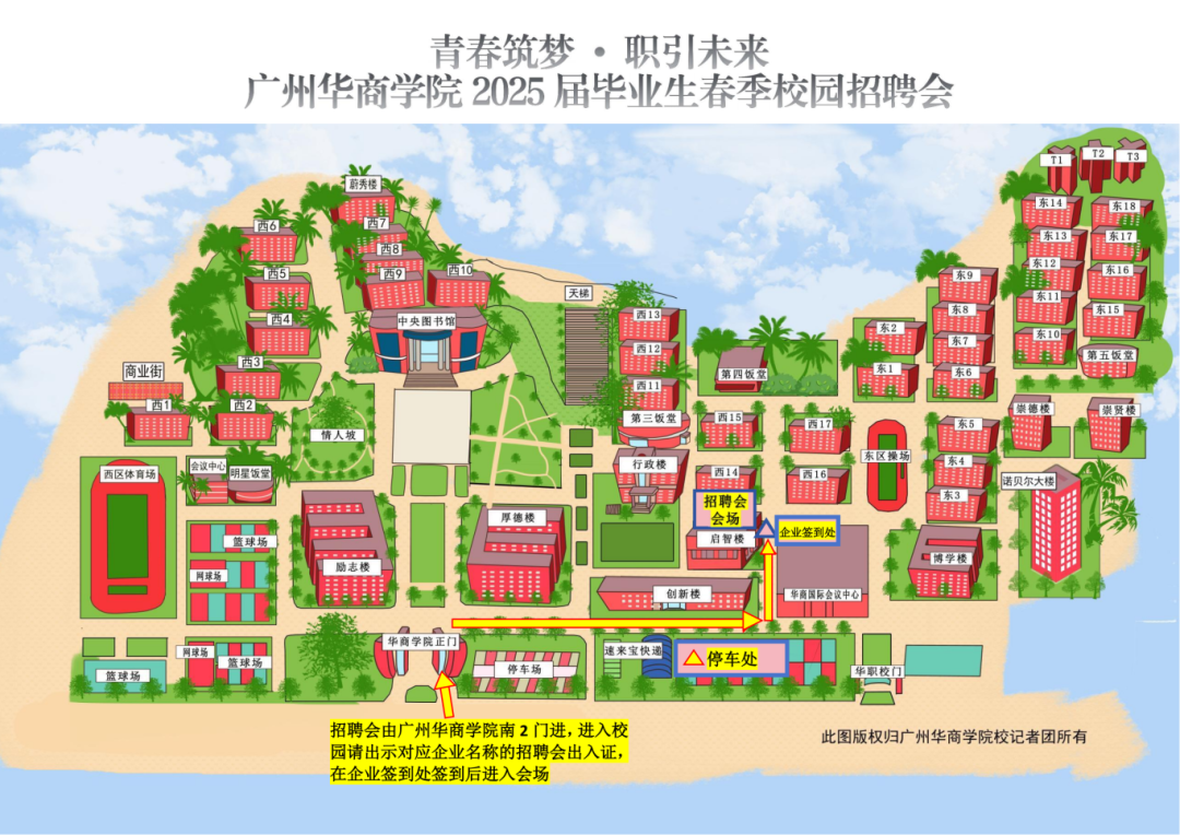 招聘会当天,参会企业需凭【招聘会出入证】进出校园,听从安保人员的指引,到规走地点停车;如步行入校,也需凭【招聘会出入证】进出学校。