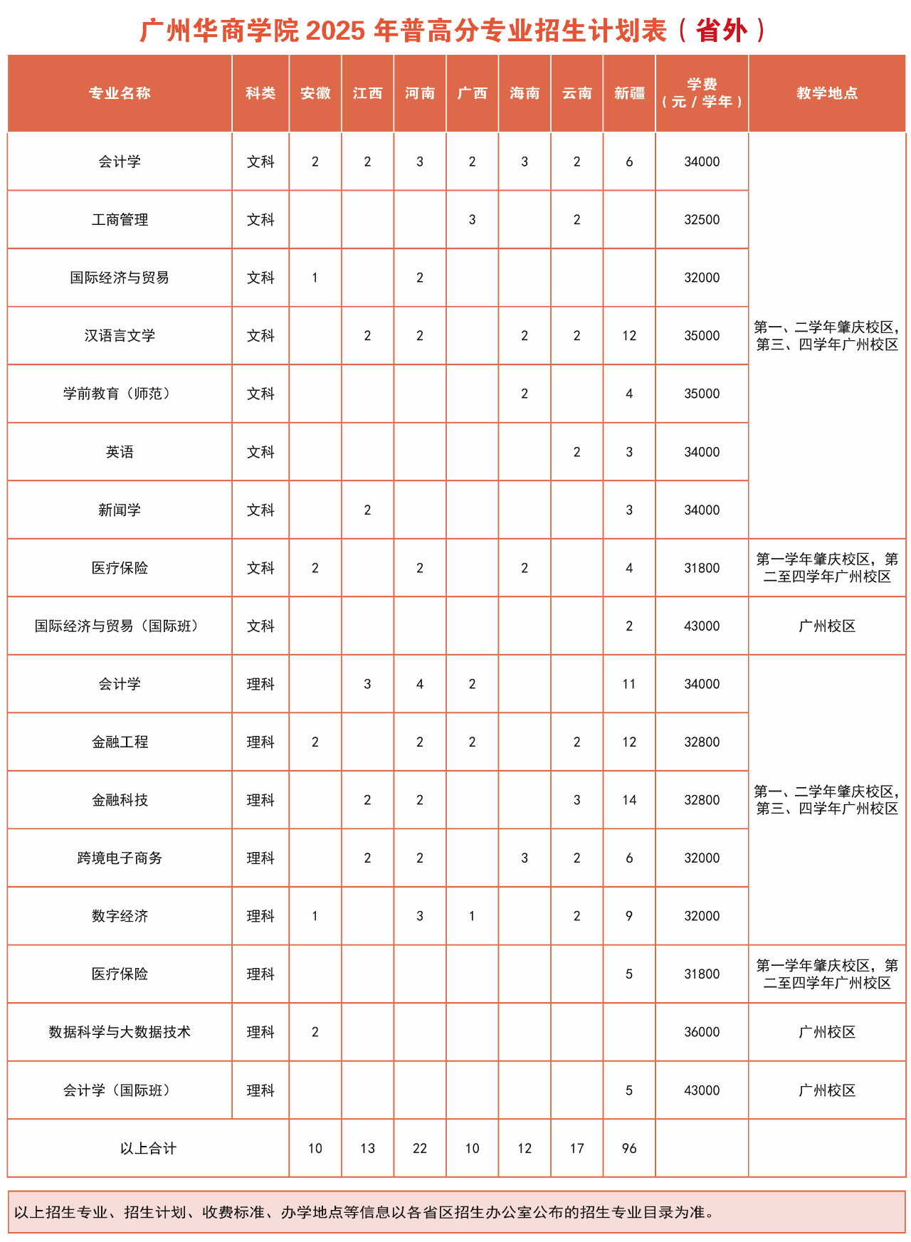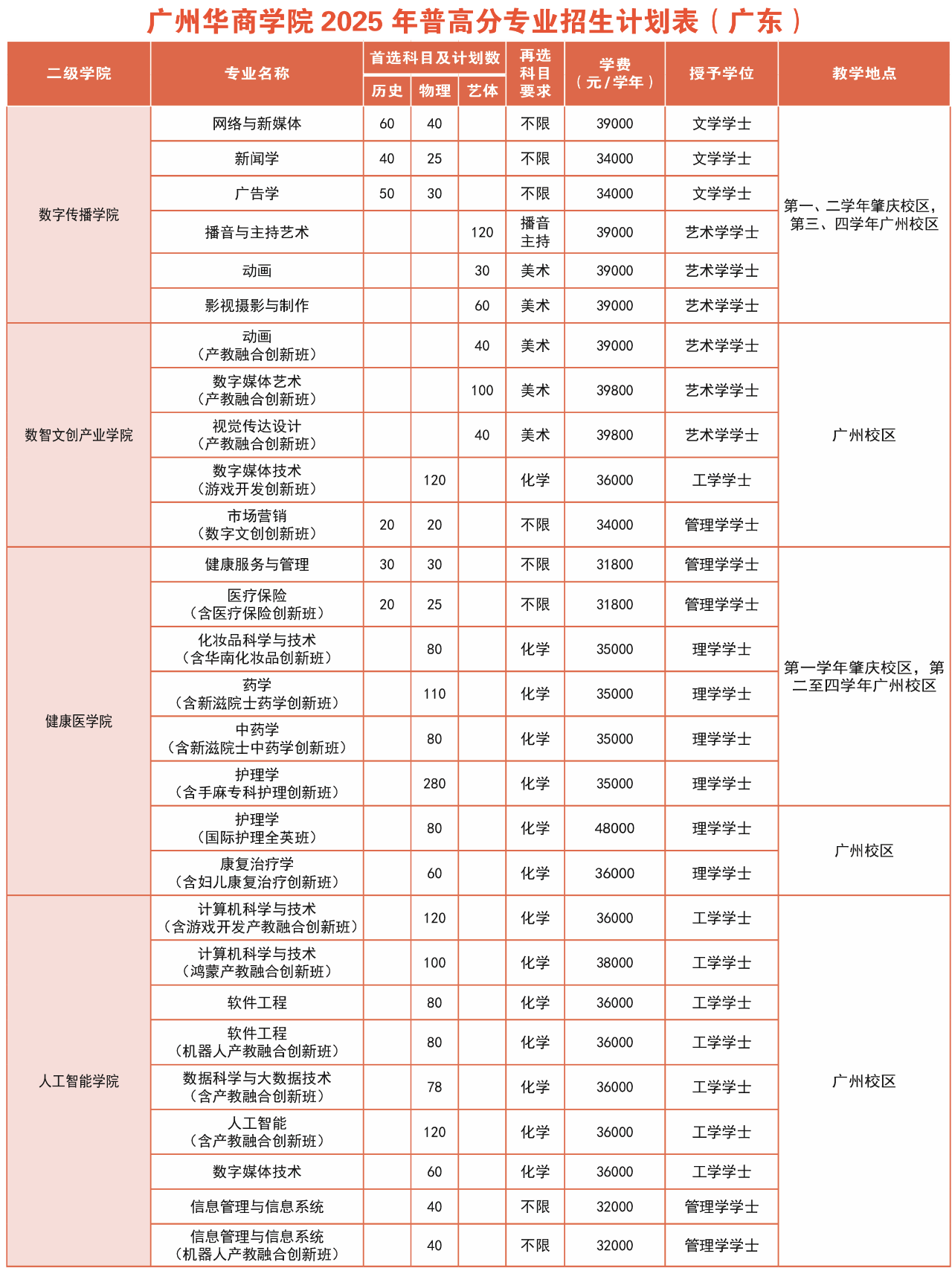 2025年,广州多多28面向全国8个省(区)投放6300个招生计划,共开设53个本科招生专业,涵盖了经、管、文、工、艺、教、医等7大学科类。