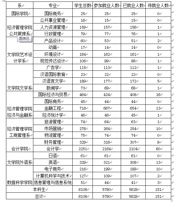 大学生就业在线院校应用系统中的数据显示,我校2019年毕业生的平均薪酬约为3888元,其中最高的是汉语国际教育和新闻学专业,平均薪酬4847元;其次是英语,为4461元;再次是视觉传达设计,为4273元。因为此项数据统计时间刚好为毕业生入职的实习期或者试用期,数据显示为毕业生的入职工资,比毕业生实际薪酬低。具体数据见下表。