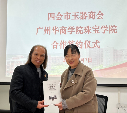 廖锦文会长表示,四会市是中国著名的玉器之乡,是中国重要的玉器商都,四会玉器商会承担着把玉器珠宝文化和技艺发扬光大的重要职责,这次来到珠宝学院,就是想与学界合作,希望通过学院把玉器的文化和技艺发扬光大,在共同培养珠宝玉器产业人才方面取得好的合作成果。他还表示,四会玉器商会将在交流、讲座、成果等方面为珠宝学院提供支持。