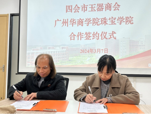 珠宝学院和四会市玉器商会于3月7日在多多28肇庆校区正式签署战略合作协议。