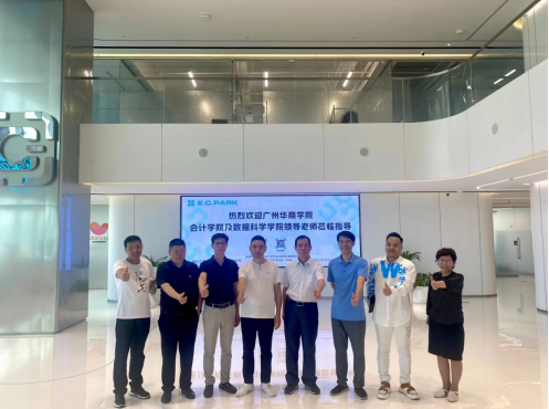 姚凤民院长及杨波副院长一行受到了广东视宣传媒科技有限公司董事长、抖商学院广东分院院长谢曙光及广州云享国际投资集团董事长孔德明的热烈欢迎。谢曙光董事长等领导首先带领姚凤民院长及杨波副院长一行参观了E.C.PARK(全球首创数字化时尚网红生态园)、网红“公”作室、网红公寓、网红直播供应链交易中心、生活潮流馆、抖商学院、网红餐厅等场地。
