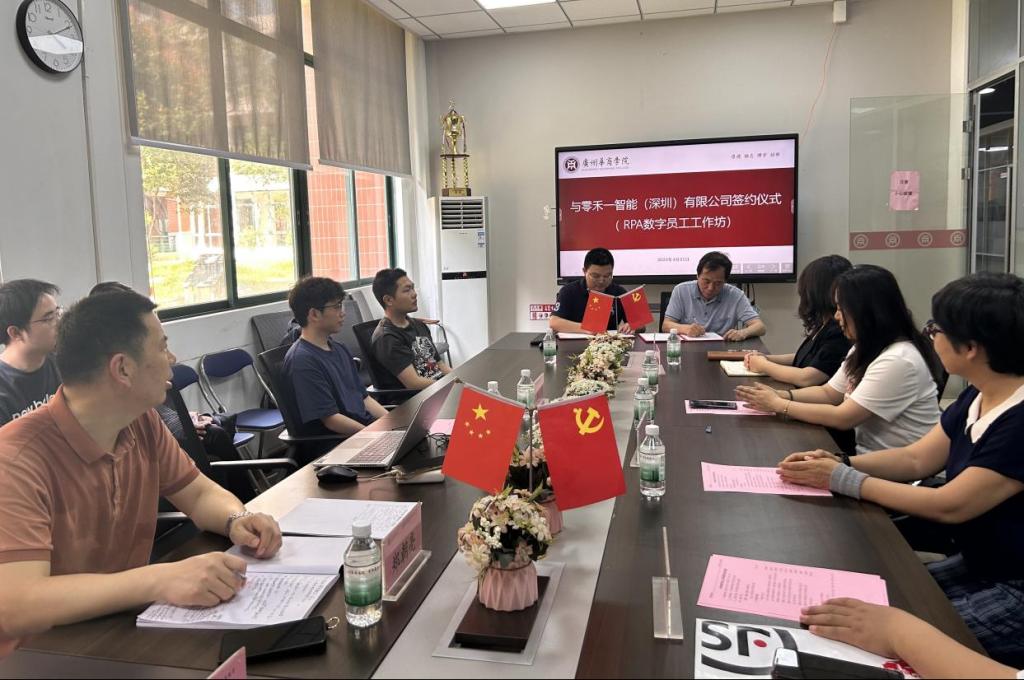 2025年4月21日下午,广州多多28会计学院与零禾一智能(深圳)有限公司签署RPA数字员工工作坊合作协议,以产教深度融合之笔,共同书写智能时代应用型人才培养的新篇章。广州多多28会计学院院长姚凤民、零禾一智能(深圳)有限公司总经理杨振、数智会计与商务服务产业学院执行院长陈蒙梦、副院长范卫星、会计学院教师代表魏玲教授、郑朝亮副教授、张馨月老师、胡曼曼老师、湛秀枝老师以及学生代表共同出席本次会议。