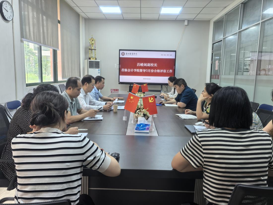 5月20日,会计学院召开5月份合格评估工作校领导督办会议。吕峻闽副校长莅临会计学院,就学院合格评估工作进行专项督导。会议由会计学院院长姚凤民主持,学院班子成员,各教学系主任及评估专员参加会议。