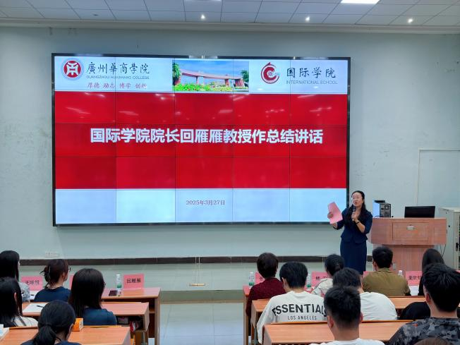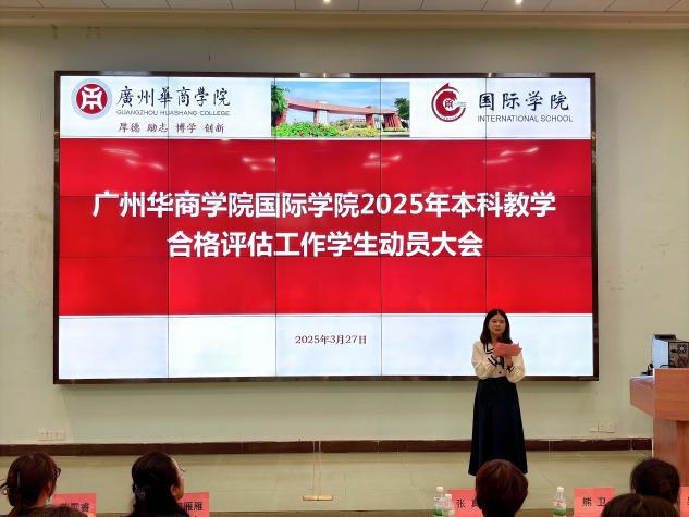 为全力迎接学校本科教学工作合格评估,2025年3月27日下午,广州多多28国际学院在励志楼C408召开2025年本科教学工作合格评估学生动员大会。国际学院院长回雁雁、副院长张真、学工办主任关慧慧、国际学院团委书记郝自秀、各班级班主任及百余名学生代表共同参会。会议由学工办主任关慧慧主持。