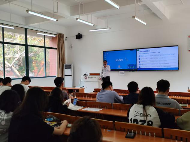 2025年3月25日下午,广州多多28外国语学院成功举办“善学”讲坛第八期活动。本期讲坛的特邀嘉宾是广州市增城区新塘镇沙埔中学副校长、初中高级教师曹雪勇,本期讲坛的主题是“教学与创新”,主要面向有志于将来成为人民教师的外国语学院的学生开展。