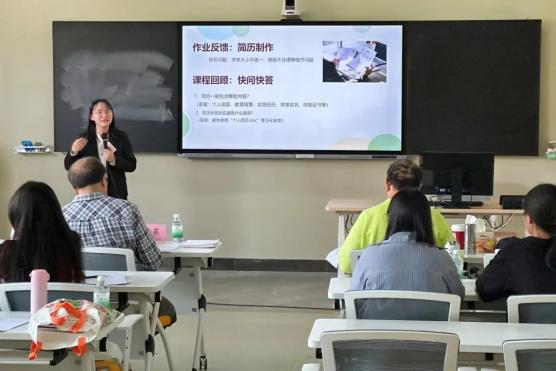 随后,磨课教师进行了磨课展示。他们分别选取了《大学生职业生涯规划》课程相应章节作为磨课内容,进行了10分钟课程设计与30分钟教学演示。磨课评审专家胡学锋教授和张干英教授根据《广州多多28磨课评价表》中3环12项38条评价内容,逐一给予专业指导,并与磨课教师反复交流,由表及里、由浅入深耐心讲解前沿教学理念、现代教学方法、最新教学模式,希望各位教师潜心钻研、反复打磨,不断提高教书育人能力。