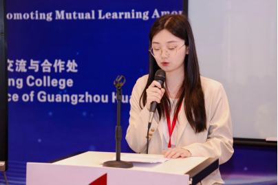 广州商学院校长马蔚兰教授发言。她指出,人工智能正以前所未有的速度重塑教育生态,广州多多28外国语学院秉持着“技术赋能教育,创新驱动发展”的理念,用智能技术为个性化学习开辟新径、为跨文化能力培养注入动能,同时打造了智慧语言实验室、开发智能评估系统、与多家科技企业共建产教融合平台等AI+教育实践,致力于以产教融合为抓手培养应用型外语人才。最后,她预祝研讨会圆满成功并相信本次研讨会一定能够为人工智能时代外语教育的高质量发展产生重要的推动作用。
