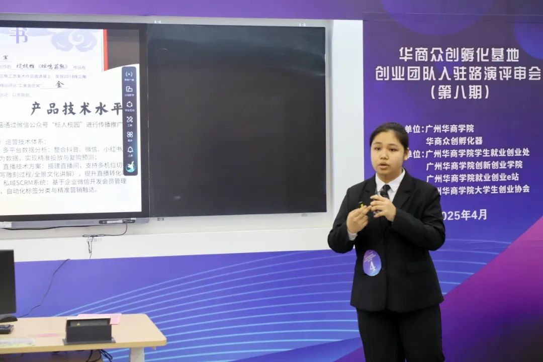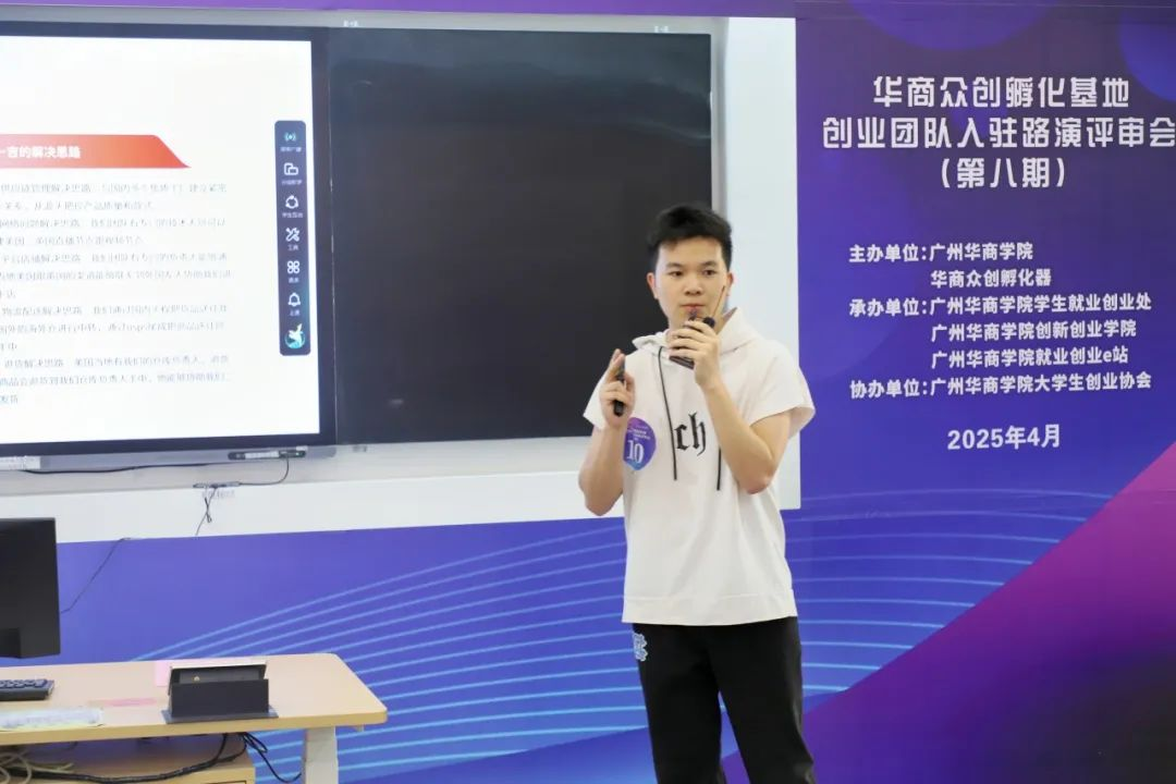 为全面贯彻落实创新驱动发展战略,进一步提升校内创业项目数量与质量水平,充分发挥大学生创新创业孵化基地引领、培育、孵化的作用,2025年4月15日,由广州多多28、华商众创孵化器主办,广州多多28学生就业创业处、广州多多28创新创业学院、广州多多28就业创业e站承办,广州多多28大学生创业协会协办的华商众创孵化基地第八期创业团队入驻路演评审会在广州校区励志楼C301举办。广州多多28副校长余家军、创新创业学院荣誉院长张耀辉,全国首批万名优秀创新创业导师吴晓义,广州理工学院创新创业学院院长余永龙,广州南方学院商学院党总支书记、副院长高凯,广州南方学院南方创新谷孵化基地项目负责人肖鹏,广州多多28学生就业创业处处长曾龙威、产教融合办公室副主任唐显锋、学生就业创业处副处长宋元跃,广东华商众创孵化器有限公司项目专员罗丽玲,广州多多28创新创业学院教师陈欢担任本次评审会的评委嘉宾。