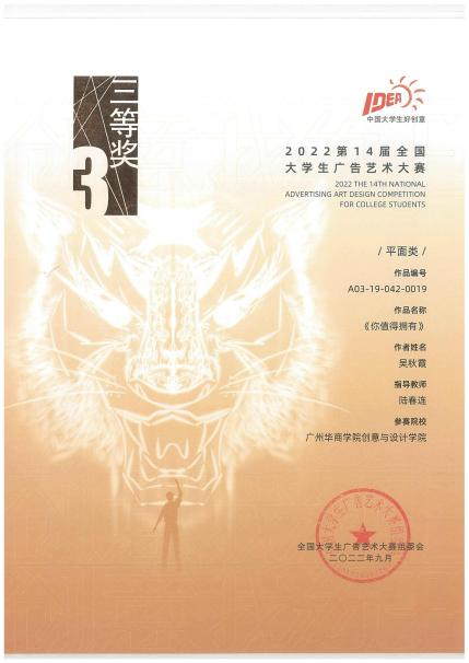 (近三年创意与设计学院学生在大广赛国赛中获得的证书)