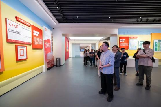 项目负责人围绕工业遗产活化的具体方案,详细解读建筑结构技术标准与功能空间改造的创新设计。在实地参观中,项目团队通过实物展示与互动体验相结合的方式,让师生们沉浸式感受工业遗产的创新魅力。在保留原貌的造船车间内,传统木工工具与现代数字投影技术交相辉映——投影生动还原从原料加工到船舶组装的传统造船工艺,历史与现代在此碰撞交融,加深了师生们对文化遗产创新利用的理解,也为师生们在文化创意、历史传承等领域的学习实践提供了鲜活范例。