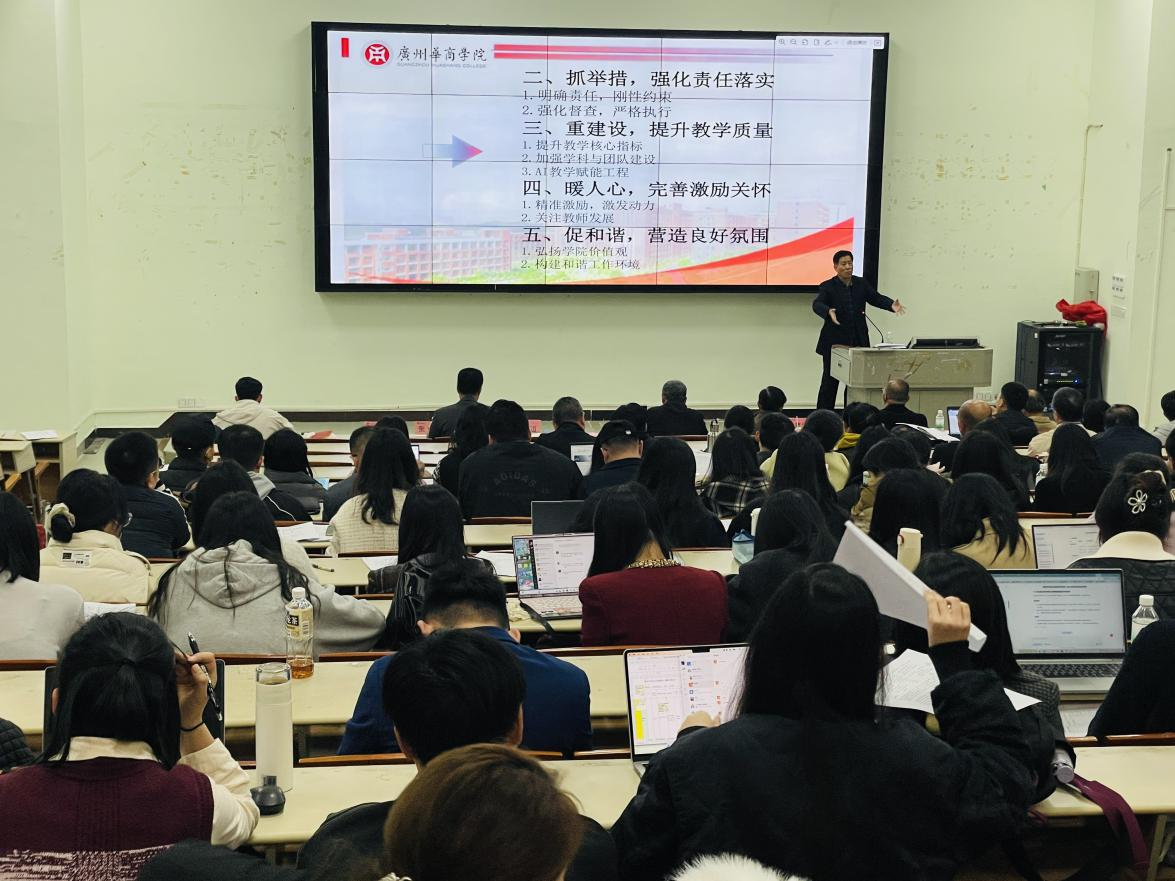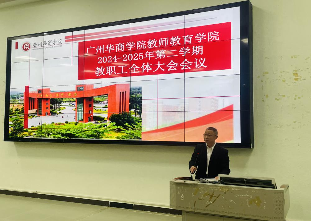 2025年2月25日,广州多多28教师教育学院在励志楼B207召开全体教职工大会。本次会议由学院党委书记陈上仁主持,全体教职工齐聚一堂,共同聚焦学院发展、共商教育教学大计,全力为本科教学工作合格评估做准备。