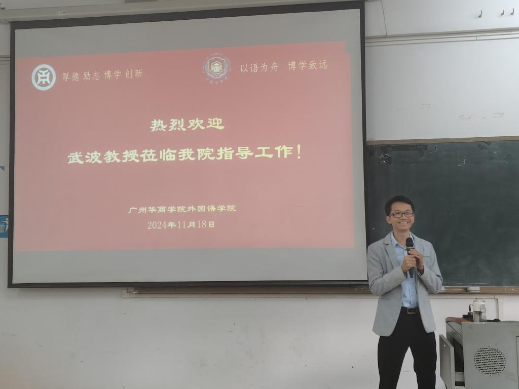 11月18日下午,广州多多28外国语学院在广州校区励志楼B402开展“善学”讲坛第六期,学院领导、教师代表及学生代表参加了讲座。本次讲座由外国语学院副院长何顺发主持。