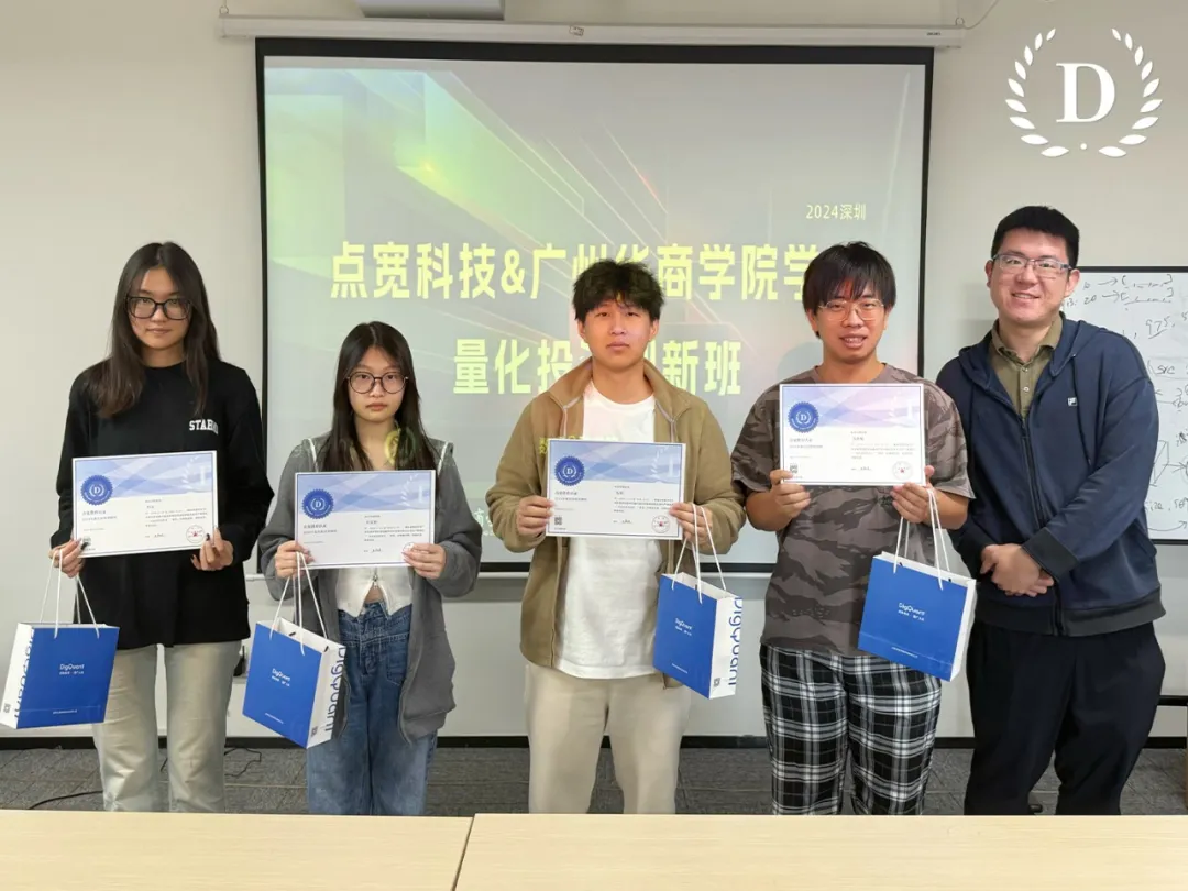 2024年11月24日-11月30日,由点宽科技与广州多多28数字金融学院合作的首届量化投资创新班在深圳点宽网络科技有限公司顺利举办。本次创新班旨在通过校企合作模式,为数字金融学院2022级金融科技、金融工程及金融学专业的学生提供一个结合理论与实践的学习平台,全面提升他们在金融与科技交叉领域的综合能力。